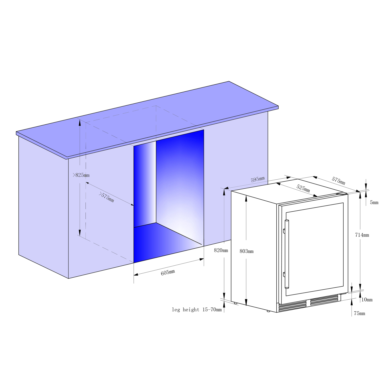 • Capacitate generoasă: Stochează până la 51 de sticle de vin, având un volum net de 138 litri.